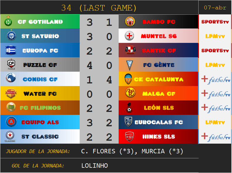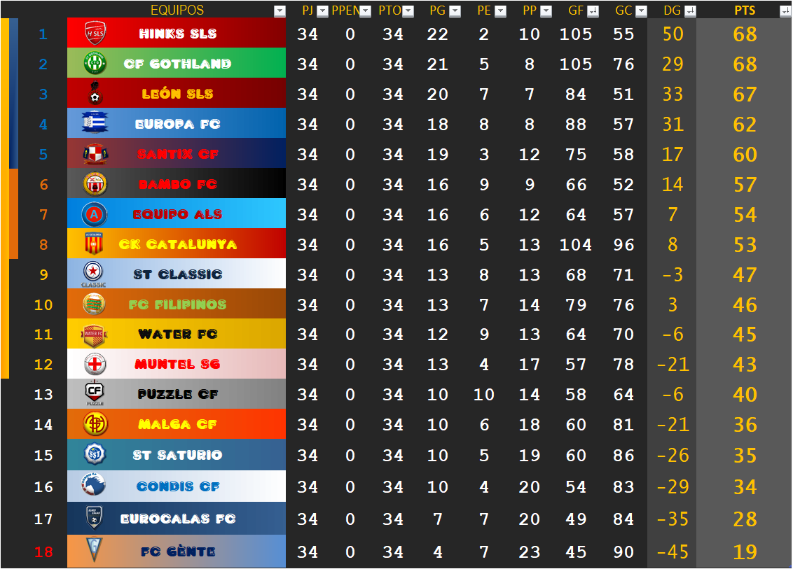 Bambo FC (campeón en 2002, 2003, 2005, 2006, 2007 y 2008), CF Gothland, CK Catalunya (campeón en 2004), Condis CF, Equipo ALS, Eurocalas FC, Europa FC (campeón en 2009), FC Filipinos, Hinks SLS (campeón en 2012, 2014 y 2015), León SLS (campeón en 2016), Malga CF, Muntel SG, Puzzle CF, St Saturio, Santix CF (campeón en 2010, 2011 y 2013),St. Classic, Water FC y FC Gènte son los clubes que conforman la LPM... ¿Cuál es tu favorito?